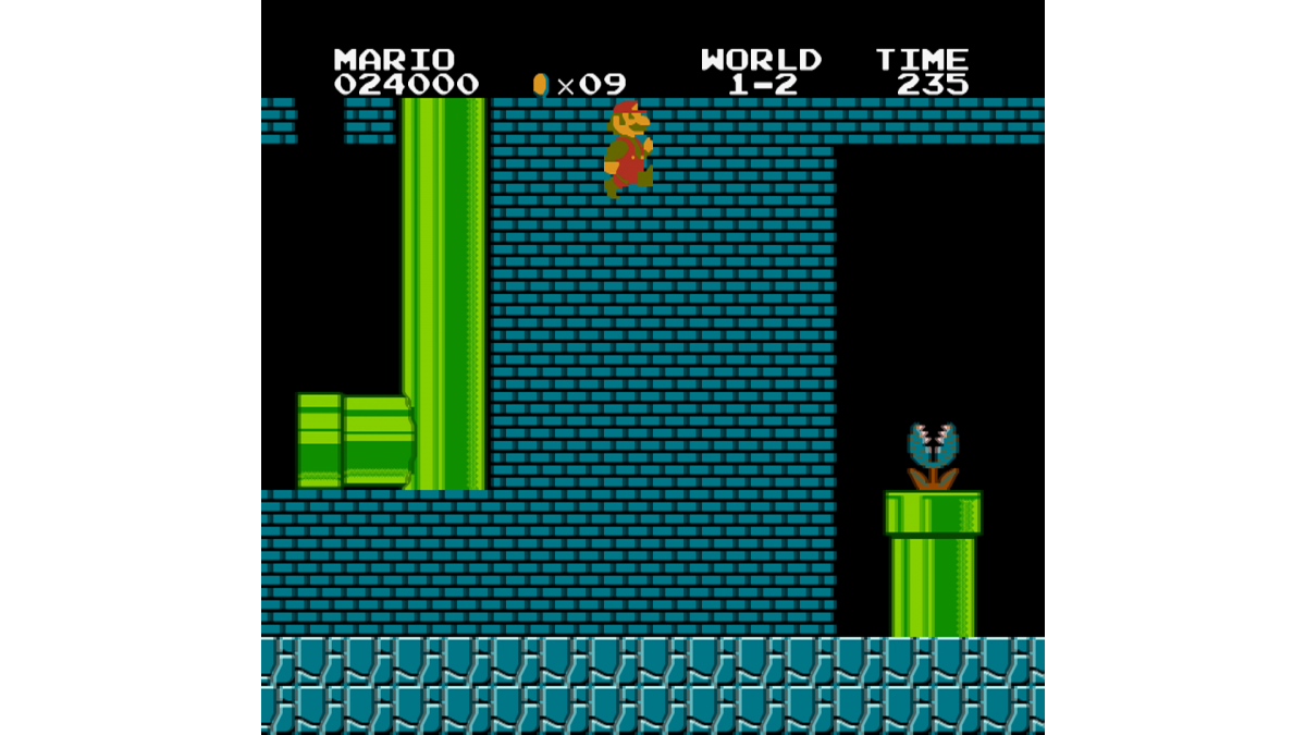 Explications : Dans le monde 1-2, il y a une warp zone qui nous amène respectivement dans le monde 4-1, 3-1 ou 2-1, en prenant un des tuyaux. De base, dans ce niveau, c’est les niveaux de la warp zone du niveau 4-2 qui sont chargés. Elle ne contient qu’un tuyau qui amène au monde 5-1.