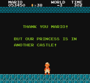 Il n’y a pas de boss à la fin mais vous aurez le message « Thank you Mario ! But our princess is in another castle ! » Une fois ce message passé, vous réapparaitrez à l’écran titre.