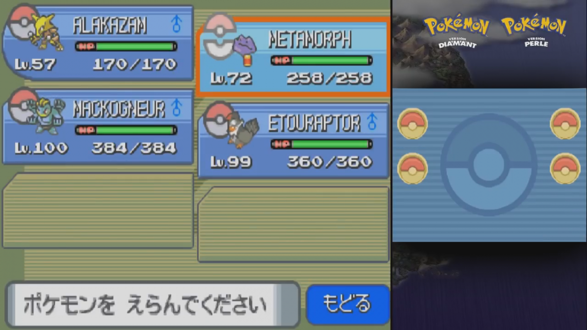 - Mettez les deux pokémon que vous avez choisis dans le deux premières positions de votre équipe.