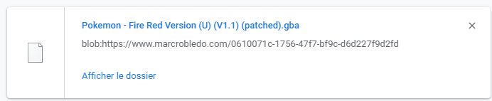 Pour savoir si la ROM à été patchée, votre fichier sera renommée par (patched) par exemple pour moi le fichier se nomme "Pokemon - Fire Red Version (U) (V1.1) (patched).gba".