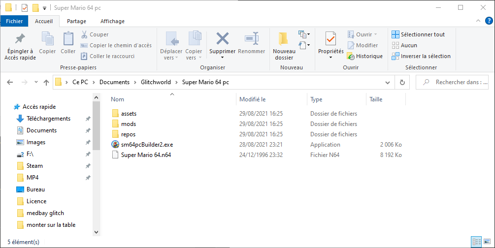 Pour commencer, créez un dossier. Dedans, mettez la rom de Super Mario 64 et sm64pcBuilder2.