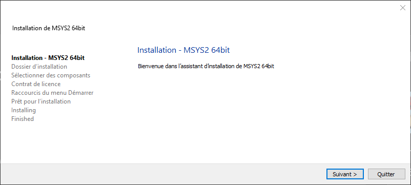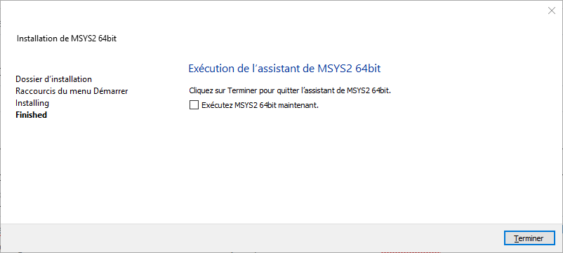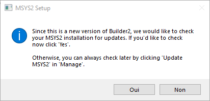MSYS2 va alors demander de se mettre à jour, dites oui.