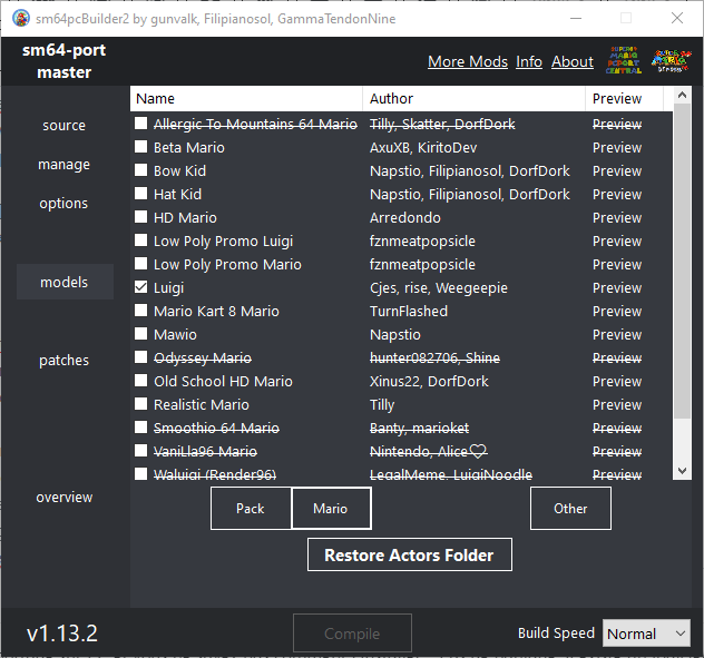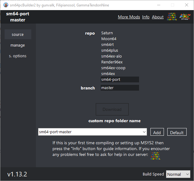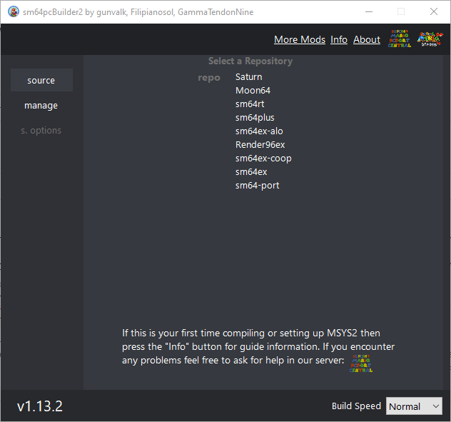 On retourne dans le menu Source et on choisit la version du jeu (dans repo) que l'on veut. Il y a une version qui ajoute la coop, d'autres qui changent les graphismes, les textures, j'en ferais la description dans la section "Mods". Vous pouvez également en ajouter en les téléchargeant sur Internet. Personnellement, je vais juste installer le portage donc je sélectionne sm64-port.