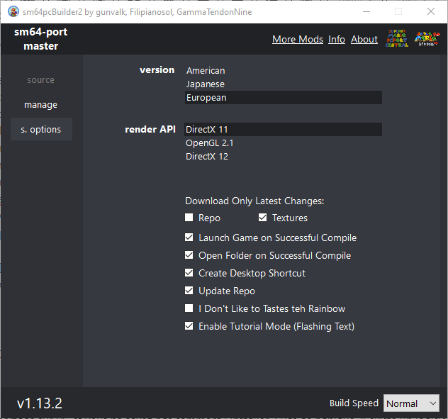Dans sm64pcBuilder2, allez dans options et choisissez la version qu'à votre rom ! Changez également les options que vous voulez !