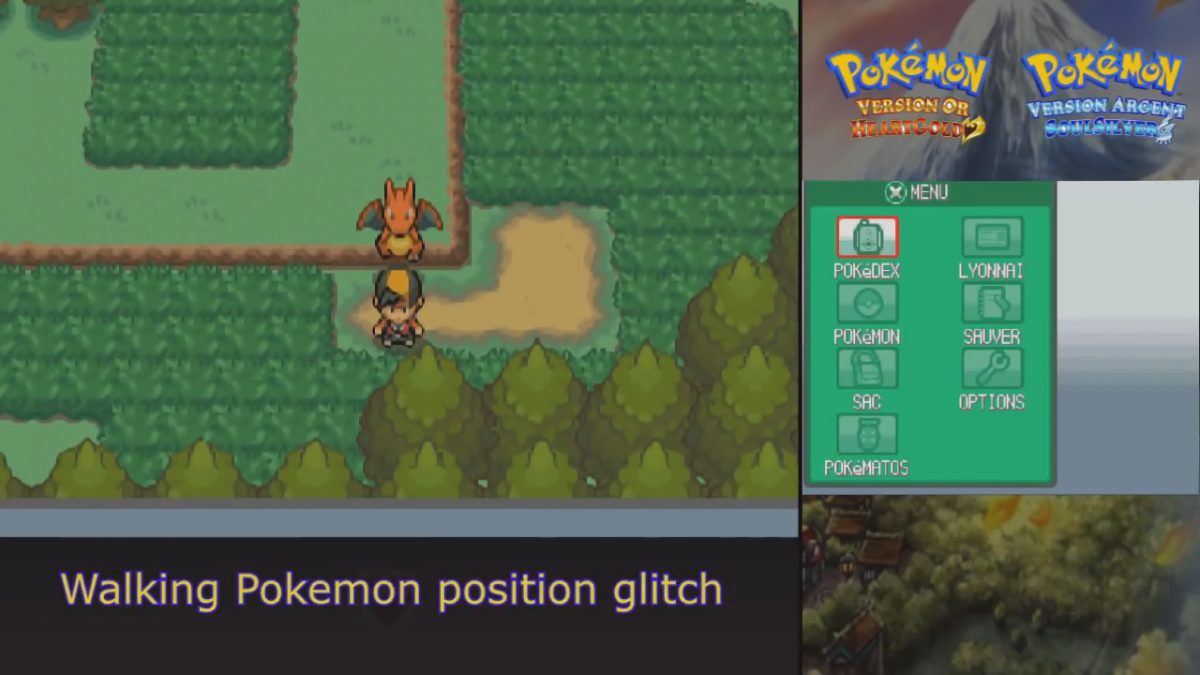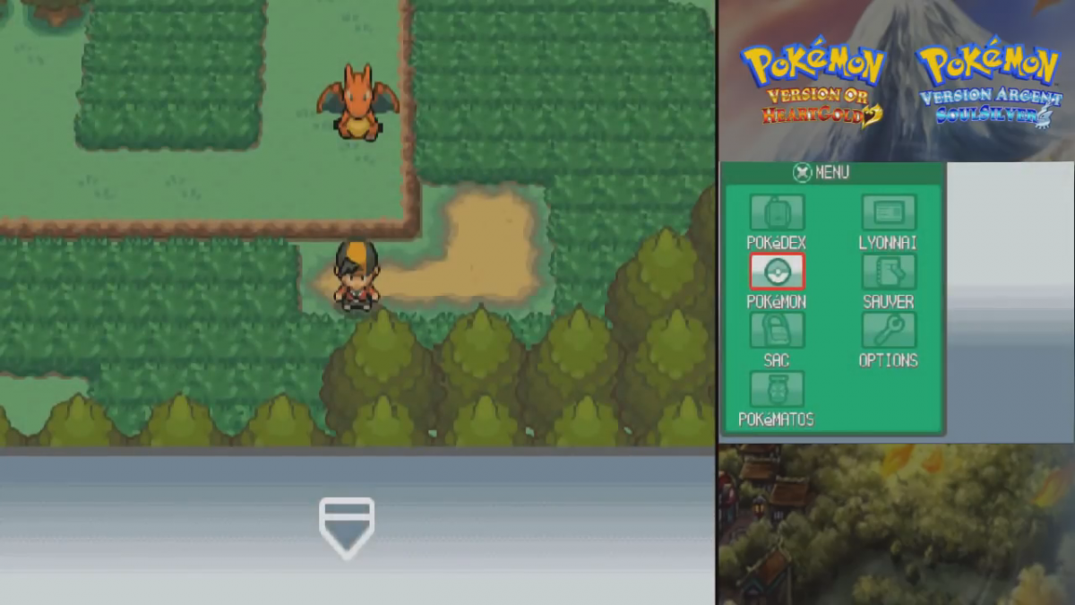 - Au moment où le pokémon qui vous suit est en train de sauter sur le rebord, ouvrez le menu