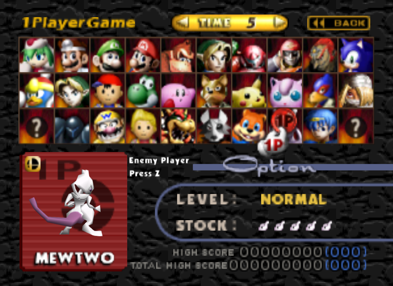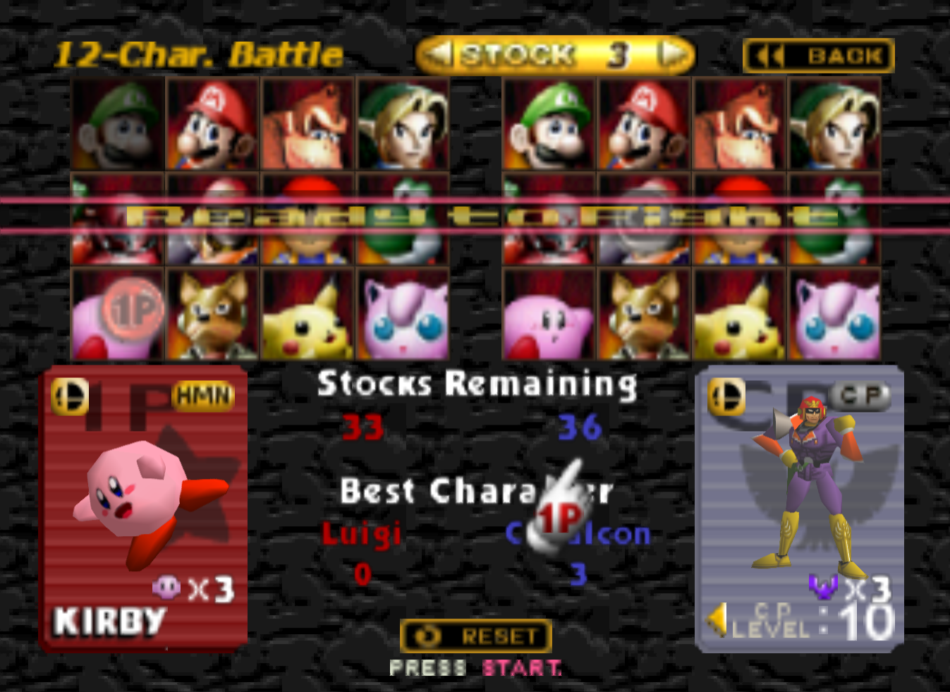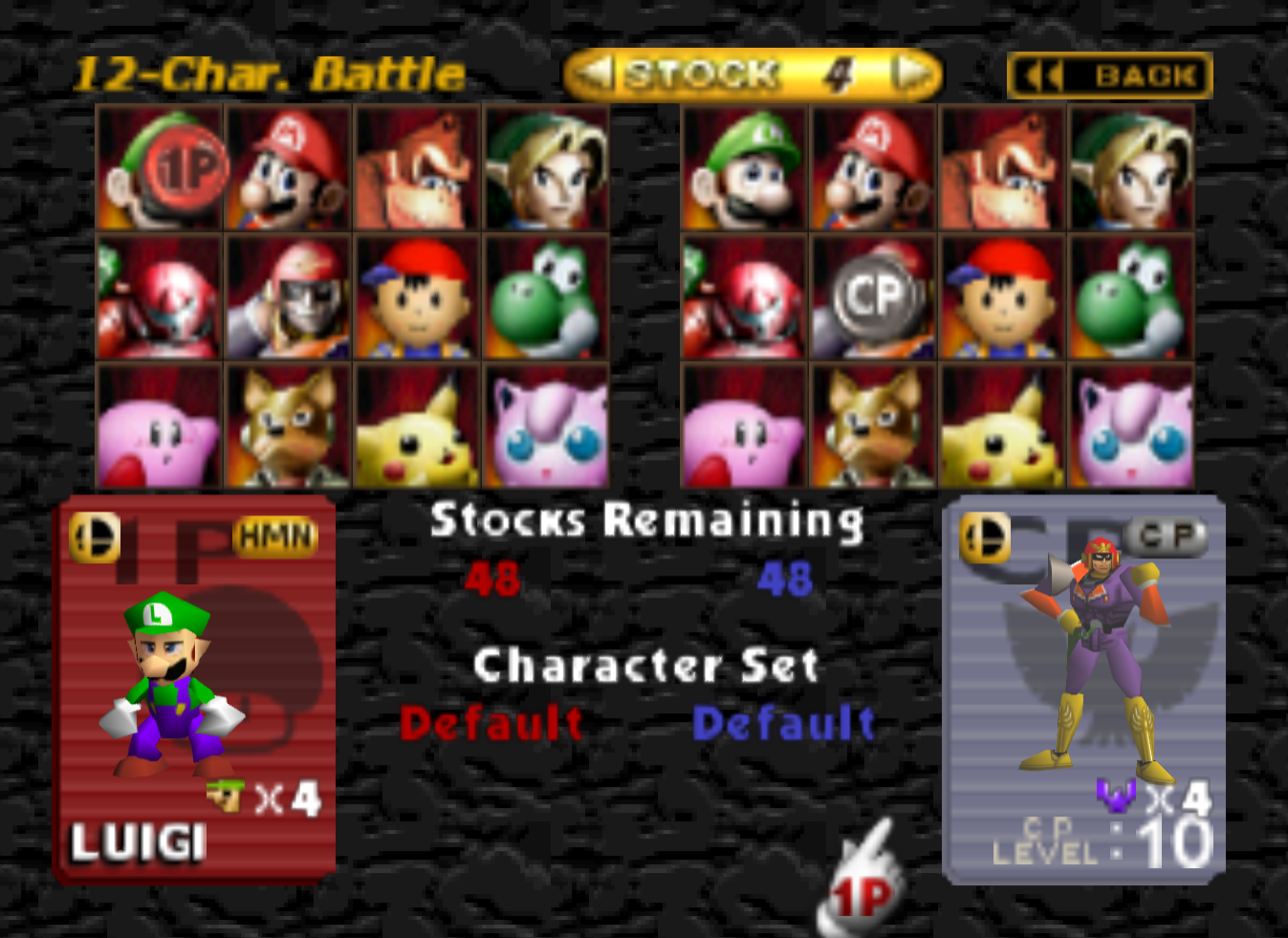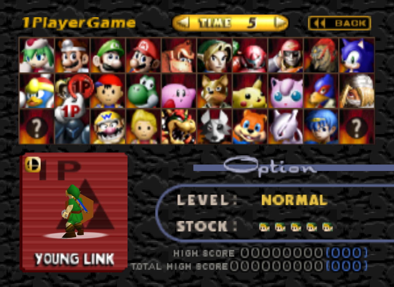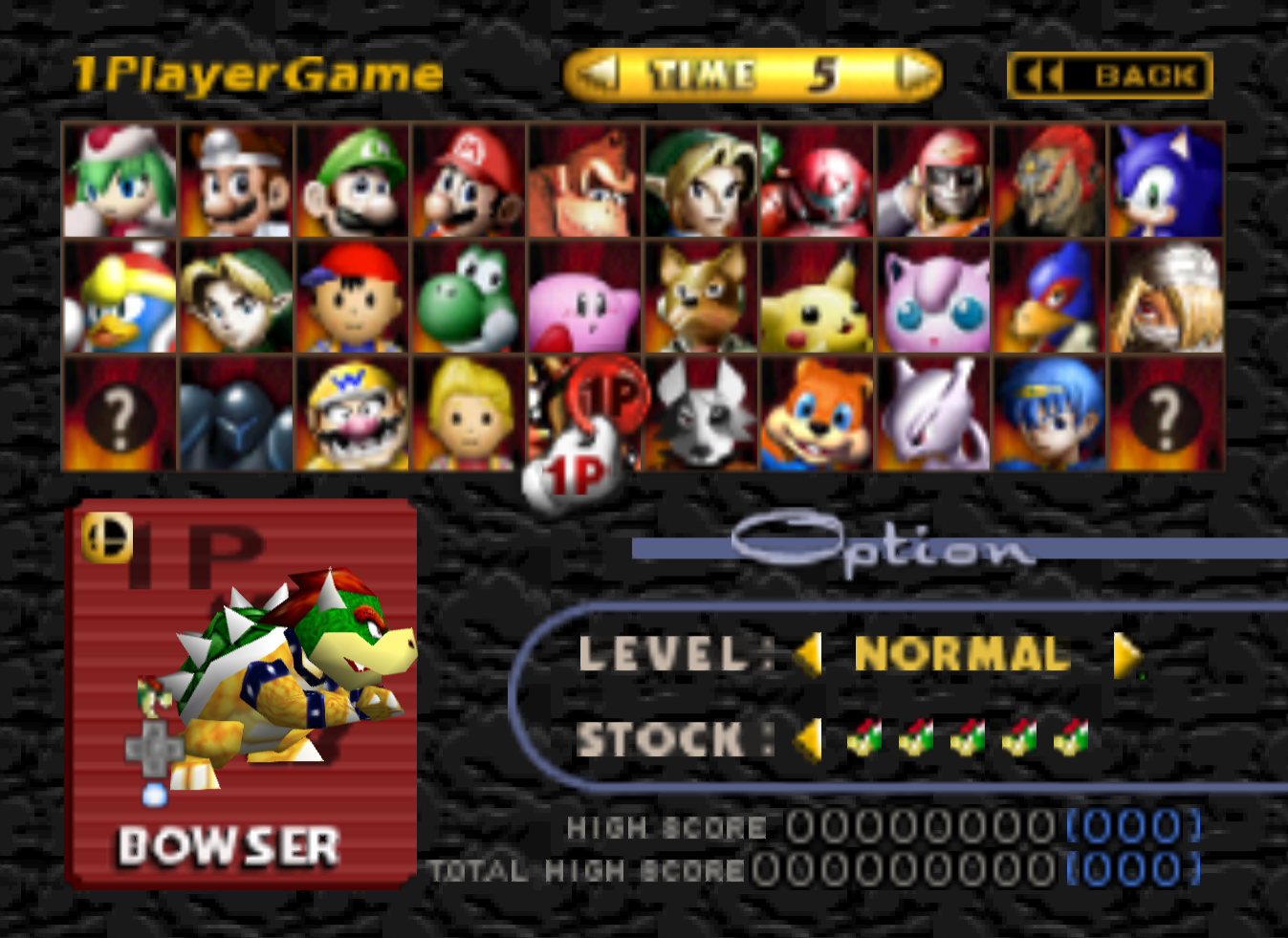 - Peach's Castle 2, Mushroom Kingdom, Subcon, Yoshi's Story, Kongo Falls, Jungle Japes, Great Bay, Hyrule Temple, Fountain of Dreams, Dream Greens, Corneria, Venom, Pokémon Stadium, Big Blue, Onett, Flat Zone